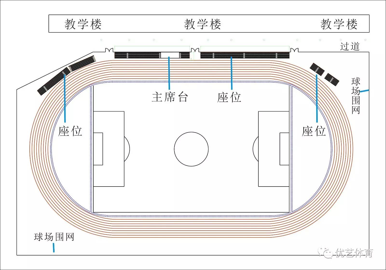 * 看臺(tái)首層直接落地看臺(tái)配制后欄桿和側(cè)欄桿;